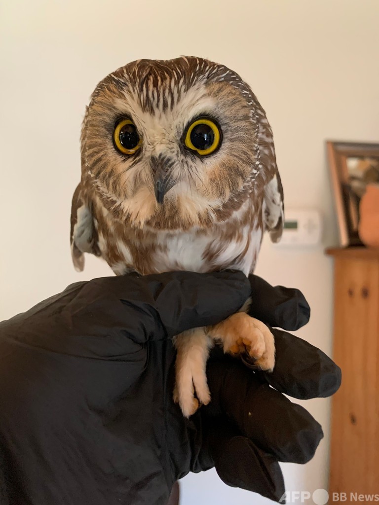 フクロウは「アメリカキンメフクロウ」という種で、「ロックフェラー」と名付けられた。(c)AFP