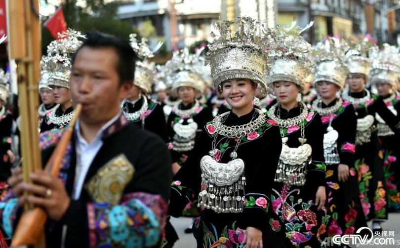 【11月20日 CGTN Japanese】11月19日は貴州省(Guizhou)黔東ミャオ族トン族自治州雷山県に住むミャオ族の最も盛大な祭りのミャオ年です。この日、13万人もの地元ミャオ族の人々が晴れ着姿で豊作を祝い、感謝の気持ちを込めて先祖を祭ります。人々は盛装パレードで歌や踊り、無形文化遺産に指定された刺繍や医薬品、銀飾りの制作テクニックなどを披露します。