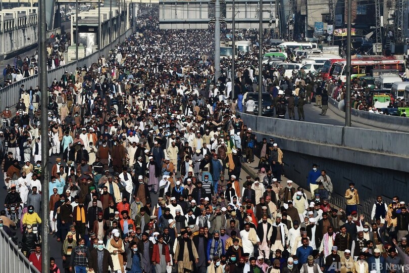 【11月22日 AFP】パキスタン・ラホール(Lahore)で21日、強硬路線のイスラム教指導者、ハディム・フセイン・リズビ(Khadim Hussain Rizvi)師の葬儀が執り行われ、大勢の人がマスクを着けず参列した。リズビ師は長年にわたり同国の宗教的少数派を脅かし、暴動を扇動したり、イスラム教への冒涜(ぼうとく)行為と闘うとして欧州諸国の破壊を提唱したりしてきた。
