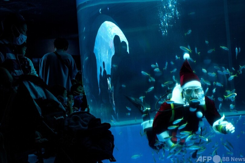 【11月22日 AFP】神奈川県の横浜・八景島シーパラダイス(Yokohama Hakkeijima Sea Paradise)では、サンタクロースに扮(ふん)したダイバーがマンボウに餌を与えるイベントが行われている。(c)AFP