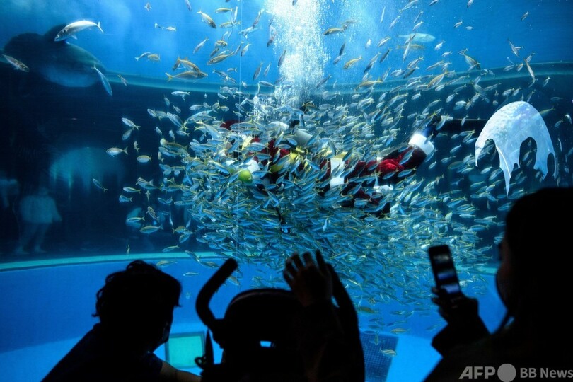 【11月22日 AFP】神奈川県の横浜・八景島シーパラダイス(Yokohama Hakkeijima Sea Paradise)では、サンタクロースに扮(ふん)したダイバーがマンボウに餌を与えるイベントが行われている。(c)AFP
