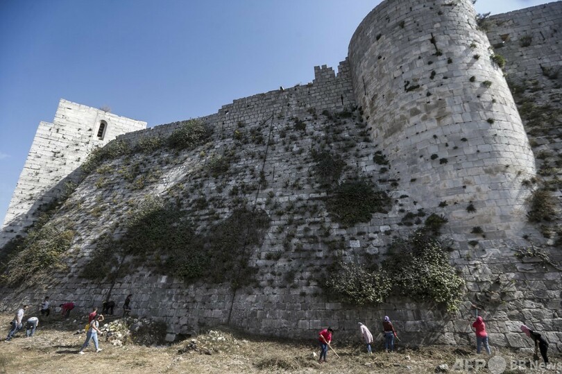【11月28日 AFP】シリアの「クラック・デ・シュバリエ(Krak des Chevaliers)」は、世界で最も有名な十字軍の城の一つだ。12世紀に建てられた城塞(じょうさい)の壁周辺では、ボランティアのラナさんがのこぎり片手に低木の除去作業を進めていた。