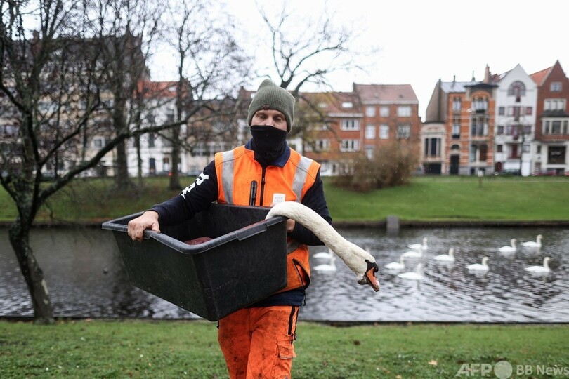 【11月23日 AFP】ベルギー・ブリュージュ(Bruges)郊外で、野鳥3羽の鳥インフルエンザ感染が確認されたことを受け、同市内の運河で先週、野鳥と接触するのを防ぐため、白鳥の捕獲作戦が展開され、約120羽が保護された。