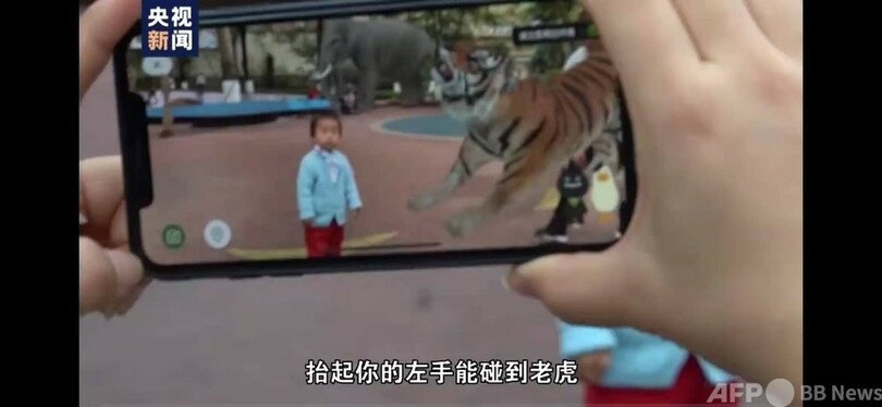 公園には、バーチャル動物園があり、訪れた人はその場にはいないさまざまな動物と一緒に写真を撮ることができます。