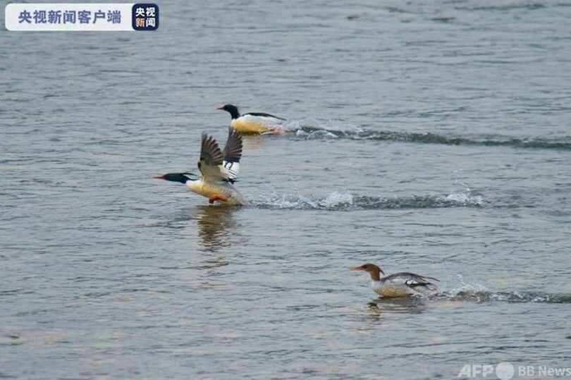 コウライアイサは中国特有の希少な鳥類で、「水中の生きた化石」「鳥の世界のジャイアントパンダ」とも呼ばれ、国家一級保護動物に指定されています。コウライアイサが洛清江流域に現れたのは今年4月に続き2回目で、とても珍しいとのことです。現地では、コウライアイサの生息環境や生活習慣に合わせて沿岸の森林資源の管理を強化するとともに、警告板を設置したり、人為的な環境破壊を厳しく禁じたりするなどして、コウライアイサの生息地の生態を元のままに守り、その数が年々増えるように最善を尽くしています。(c)CGTN Japanese/AFPBB News