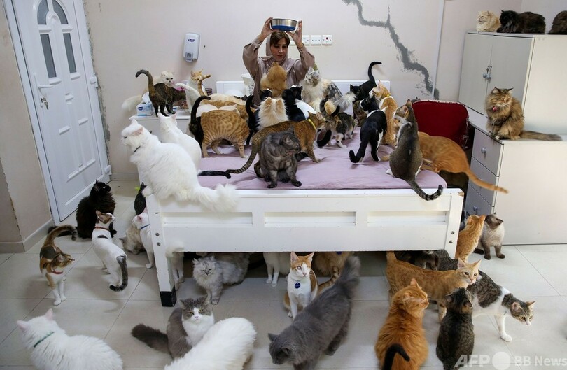 【11月25日 AFP】「動物、特に猫と犬は、人間より信頼できると思う」──中東オマーンの首都マスカットに住むマリヤム・バルシ(Maryam al-Balushi)さん(51)がベッドに座って餌を取り出すと、数十匹の猫がわやわやと群がった。かたわらに置かれた爪とぎポールでも、たくさんの猫が飛び乗ったり、飛び降りたりしている。