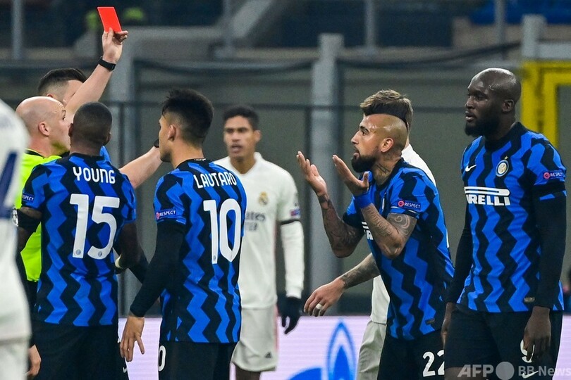 レアル選手のプレッシャーを受けて倒れたビダルはPKを求めて主審と口論したが、異議を唱えてイエローカードを2枚もらい、退場となった。