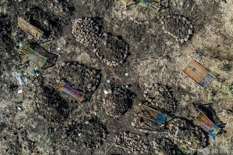 【11月27日 AFP】エチオピア北部ティグレ(Tigray)州西部の町マイカドラ(Mai-Kadra)の教会には、敷地いっぱいに、たくさんの新しい墓が掘られていた。土の上には、疲れ果てた手が放り出したシャベルの横にレモンの香りの消臭剤の空き缶が幾つも転がっていたが、死臭をごまかすことはできていない。