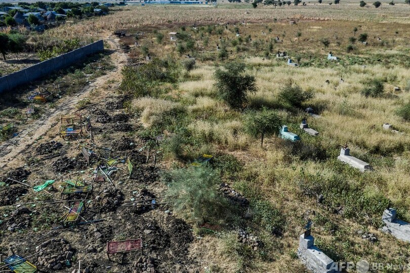 【11月27日 AFP】エチオピア北部ティグレ(Tigray)州西部の町マイカドラ(Mai-Kadra)の教会には、敷地いっぱいに、たくさんの新しい墓が掘られていた。土の上には、疲れ果てた手が放り出したシャベルの横にレモンの香りの消臭剤の空き缶が幾つも転がっていたが、死臭をごまかすことはできていない。