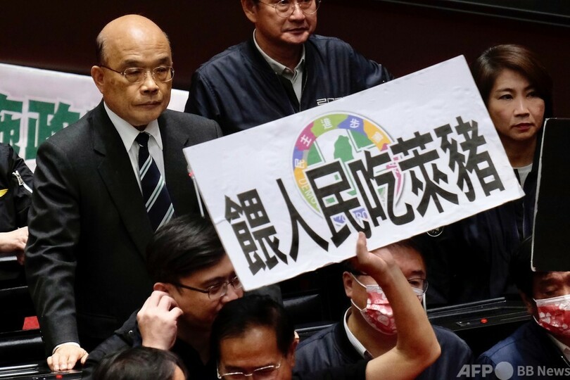 台湾議会で豚の内臓飛び交う、米国産豚肉の輸入解禁に野党反発