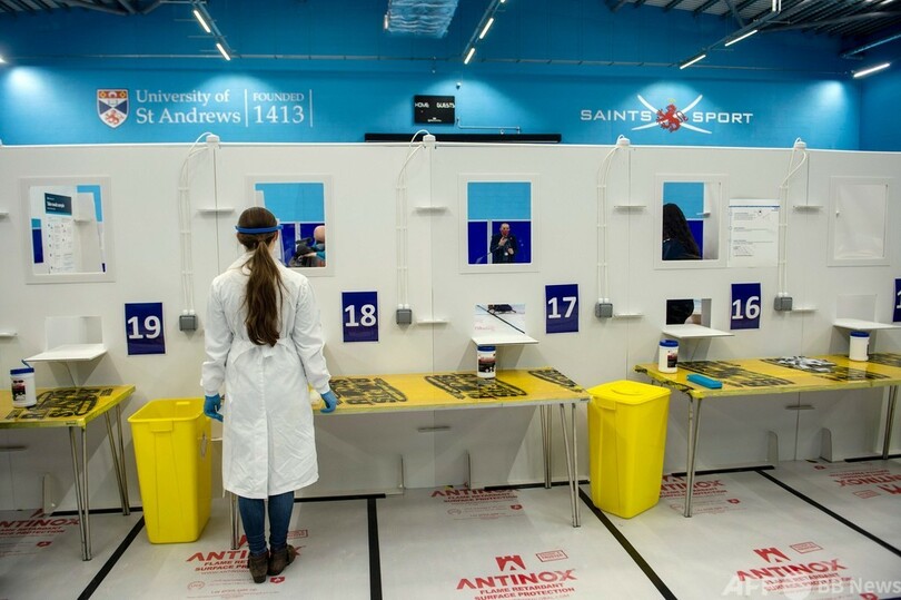 【11月29日 AFP】新型コロナウイルスの影響を受けた異例の学期が終わりに近づき、クリスマス休暇が迫る中、英スコットランドのセントアンドルーズ大学(University of St Andrews)では、大規模検査施設に変わった体育館に学生たちが列をつくっている。