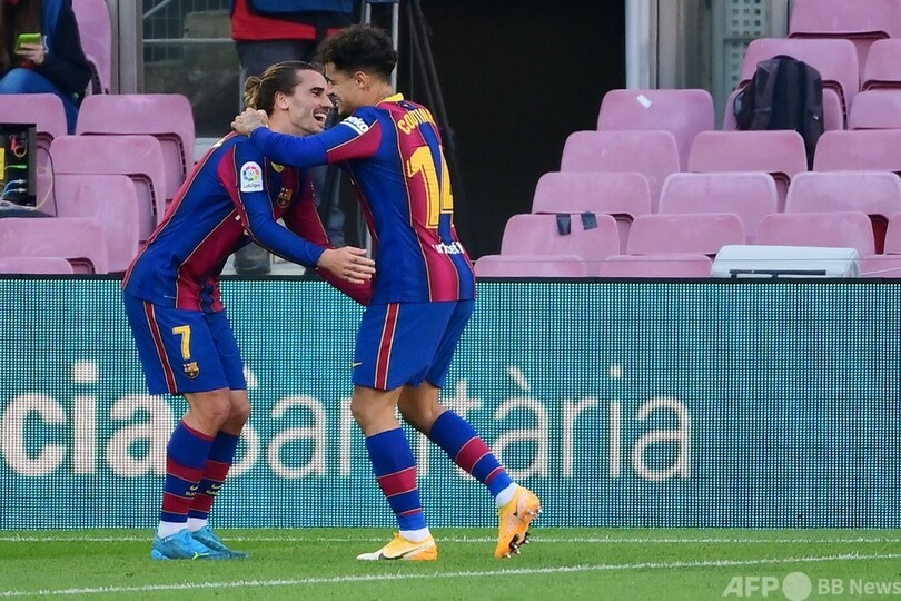 バルセロナは29分、密集したゴール前でマルティン・ブライトバイテ(Martin Braithwaite)が膝で合わせて先制すると、42分にはアントワーヌ・グリーズマン(Antoine Griezmann)がペナルティーエリアの外から強烈なボレーシュートを突き刺し、リードを広げた。