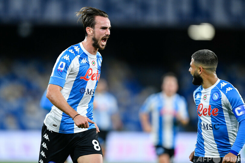 カーブのかかったFKで30分過ぎにゴールを決めたキャプテンのロレンツォ・インシーニェ(Lorenzo Insigne)は、マラドーナ氏を象徴する10番のユニホームを掲げ、それにキスをしてゴールを祝った。