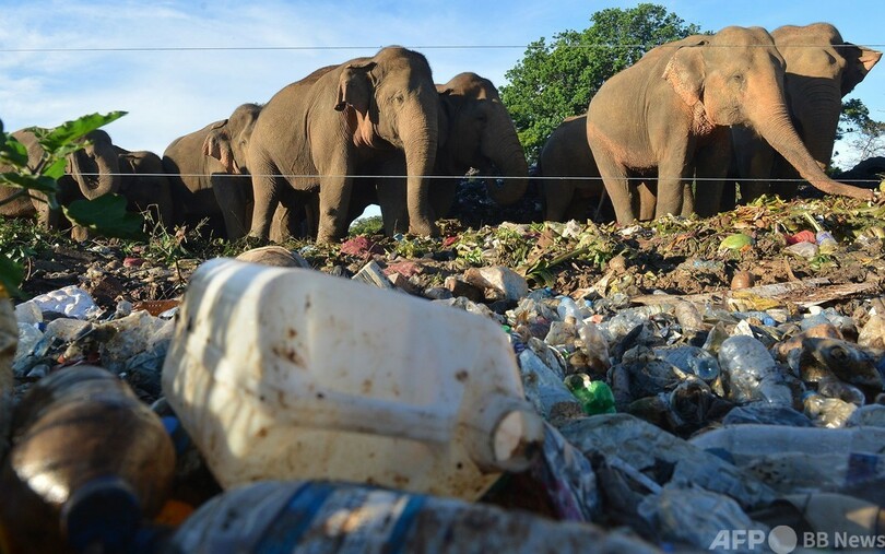 スリランカではごみ投棄場のプラスチックの摂取がゾウの主な死因となっており、投棄場で苦しんで死んだゾウを解剖すると胃から大量のプラスチックごみが出てくる。