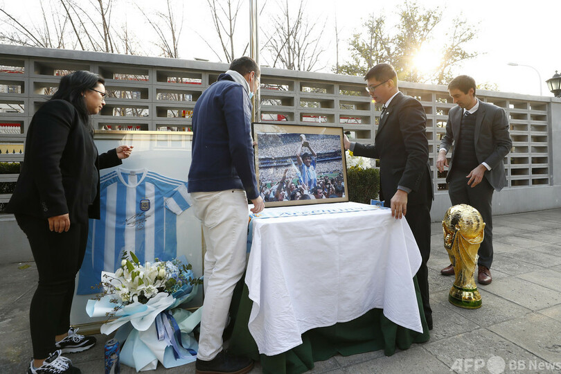 中国ファンもマラドーナ氏を追悼 北京の献花台に別れを惜しむ人々