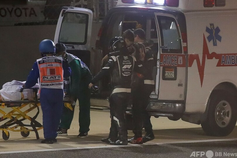 先月29日に行われたレースの1周目にアルファタウリ(AlphaTauri)のダニール・クビアト(Daniil Kvyat)と接触したグロージャンは、炎上するマシンからなんとか脱出。両手や左脚に軽いやけどを負っただけで済み、バーレーン国防軍病院で治療を受けた。