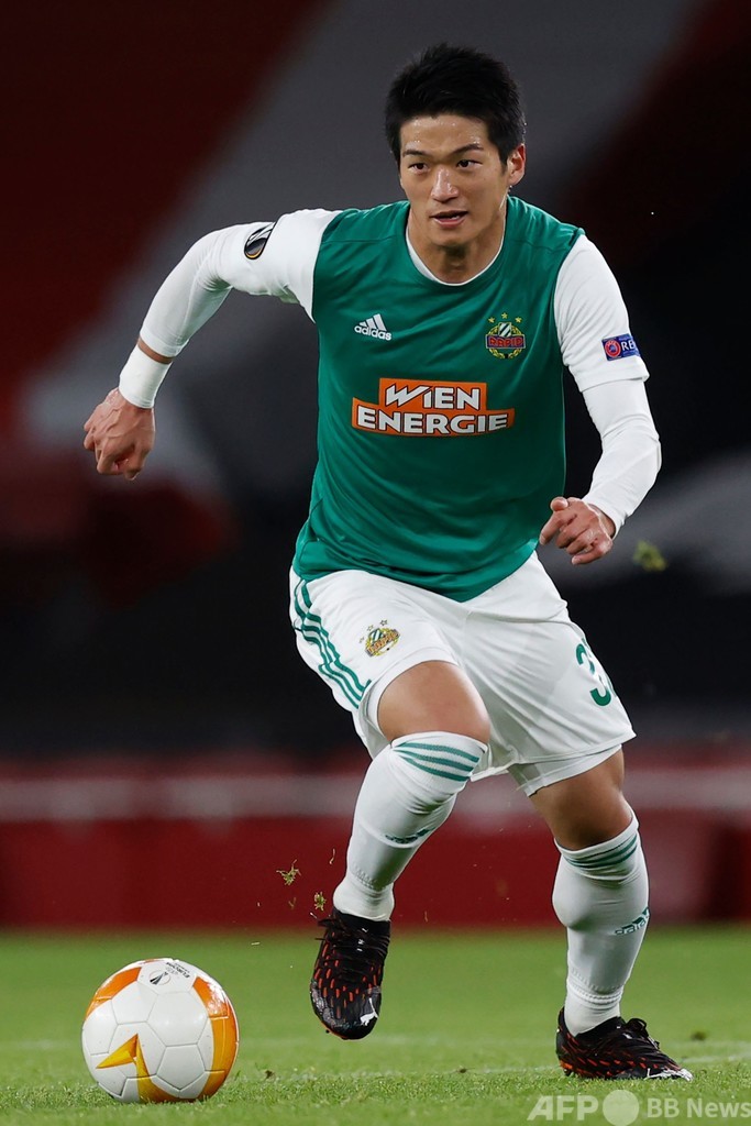 後半開始直後にラピッド・ウィーンの北川航也(Koya Kitagawa)が1点を返すと観客はジェスチャーでブーイングを示したが、アーセナルは途中出場したエミール・スミス・ロウ(Emile Smith Rowe)が4点目をマークした。(c)AFP/Kieran CANNING