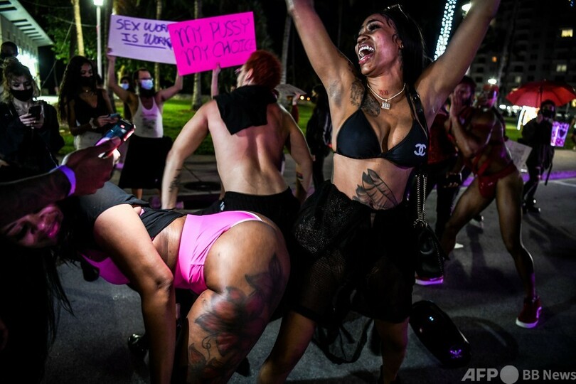 【12月6日 AFP】米フロリダ州マイアミビーチ(Miami Beach)で5日、セックスワークの非犯罪化を求める抗議運動「スラットウオーク(Slut Walk)」が行われ、多くの活動家や性産業従事者らが集まった。