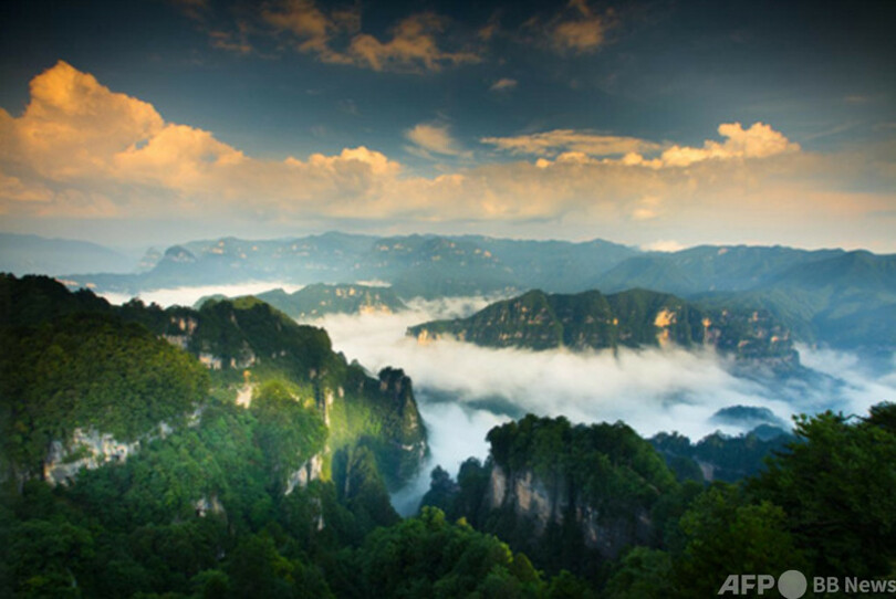 光霧山は、その独特の地理・気候により、一年を通じて雲と霧に囲まれ、太陽に照らされて仙境のように見えることからその名が付けられました。春には山花の香りが漂い、夏には木々が青々と茂り、秋には山いっぱいの紅葉、冬には樹氷。四季折々の景色が、光霧山の最大の魅力です。(c)CGTN Japanese/AFPBB News