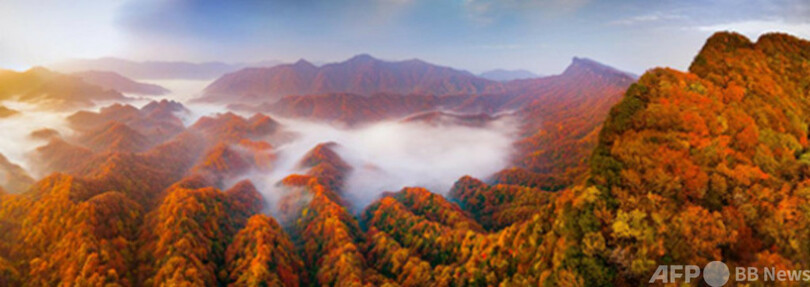 光霧山は、その独特の地理・気候により、一年を通じて雲と霧に囲まれ、太陽に照らされて仙境のように見えることからその名が付けられました。春には山花の香りが漂い、夏には木々が青々と茂り、秋には山いっぱいの紅葉、冬には樹氷。四季折々の景色が、光霧山の最大の魅力です。(c)CGTN Japanese/AFPBB News