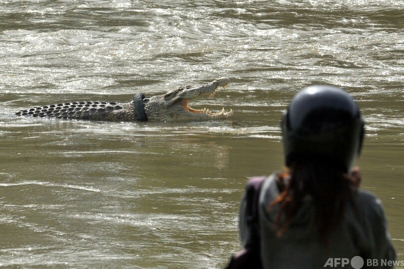 【12月9日 AFP】インドネシア・中スラウェシ(Central Sulawesi)州の州都パル(Palu)を流れる川で7日、首にオートバイのタイヤがはまったワニが確認された。