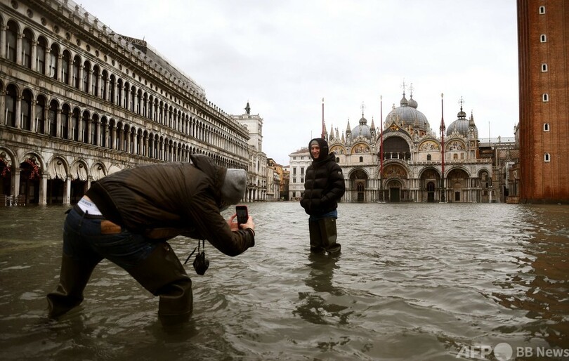 可動式防潮堤「モーゼ」稼働せず、高潮のベネチア 水に漬かる