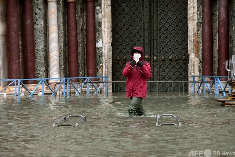 可動式防潮堤「モーゼ」稼働せず、高潮のベネチア 水に漬かる