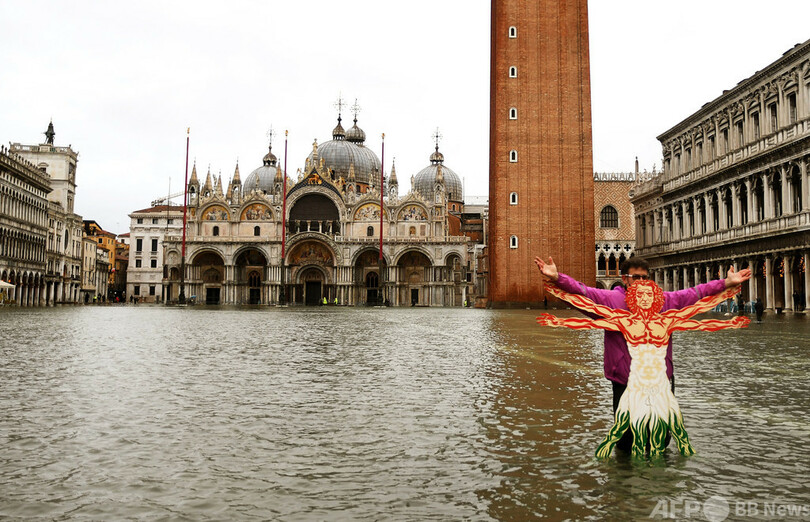 同市では、「アクアアルタ(Acqua alta)」と呼ばれる高潮から街を守るため可動式防潮堤「モーゼ(MOSE)」が設置されたが、稼動しないトラブルがあった。(c)AFP