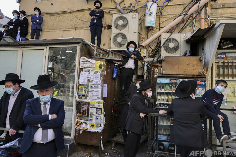 【12月15日 AFP】エルサレム(Jerusalem)のユダヤ教超正統派地区「ベイト・イスラエル(Beit Yisrael)」で、新型コロナウイルスの感染が拡大する中、神学校「ミア・イェシーバー(Mir Yeshiva)」のラビ(ユダヤ教の宗教指導者)、アハロン・ダビデ・ハダシュ(Aharon David Hadash)氏の葬儀に集まった信者たち。