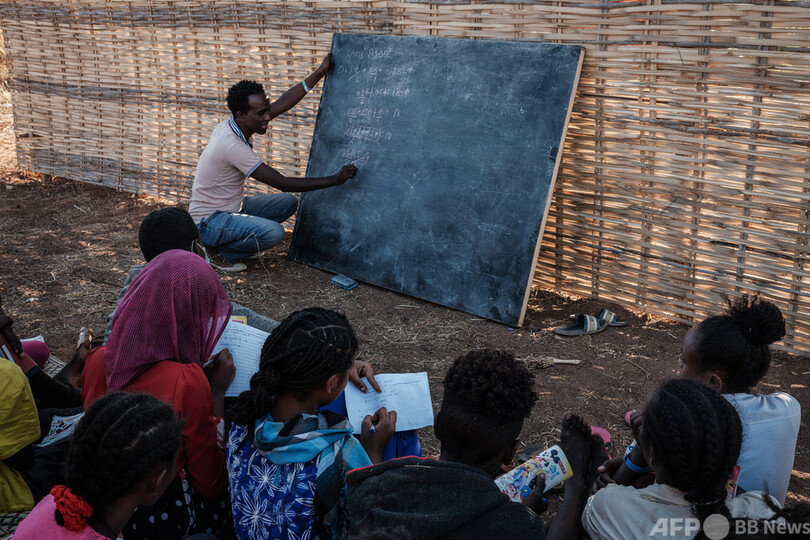 【12月20日 AFP】スーダン東部ガダーレフ(Gedaref)のウム・ラクバ(Um Raquba)難民キャンプで授業を受ける、エチオピア・ティグレ(Tigray)州の紛争から避難してきた4年生の子どもたち。