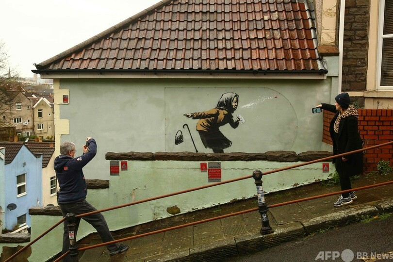 ニュース ライフ 「ハクション!」 バンクシー新作、くしゃみをする女性描く 2020年12月12日 3:35 発信地:ブリストル/英国 [ 英国 ヨーロッパ ] このニュースをシェア ‹ › ❮ 5/9 ❯ 英イングランド南西部ブリストルで、住宅の外壁に描かれたバンクシーの作品「ハクション!!」の写真を撮る人(2020年12月11日撮影)。(c)GEOFF CADDICK / AFP 画像作成中 ! 【12月12日 AFP】英国の覆面アーティスト、バンクシー(Banksy)の新作が、英イングランド南西部ブリストル(Bristol)に出現した。 題名は「ハクション!!(Aachoo!!)」で、くしゃみをしてバッグとつえを落とすヘッドスカーフ姿の女性が住宅の外壁に描かれている。(c)AFP ライフ 一覧へ> メディア・報道関係・法人の方向け 写真・動画 購入のお問合せ>