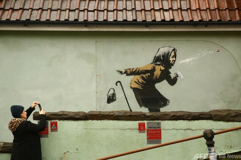ニュース ライフ 「ハクション!」 バンクシー新作、くしゃみをする女性描く 2020年12月12日 3:35 発信地:ブリストル/英国 [ 英国 ヨーロッパ ] このニュースをシェア ‹ › ❮ 6/9 ❯ 英イングランド南西部ブリストルで、住宅の外壁に描かれたバンクシーの作品「ハクション!!」の写真を撮る人(2020年12月11日撮影)。(c)GEOFF CADDICK / AFP 画像作成中 ! 【12月12日 AFP】英国の覆面アーティスト、バンクシー(Banksy)の新作が、英イングランド南西部ブリストル(Bristol)に出現した。 題名は「ハクション!!(Aachoo!!)」で、くしゃみをしてバッグとつえを落とすヘッドスカーフ姿の女性が住宅の外壁に描かれている。(c)AFP ライフ 一覧へ> メディア・報道関係・法人の方向け 写真・動画 購入のお問合せ>