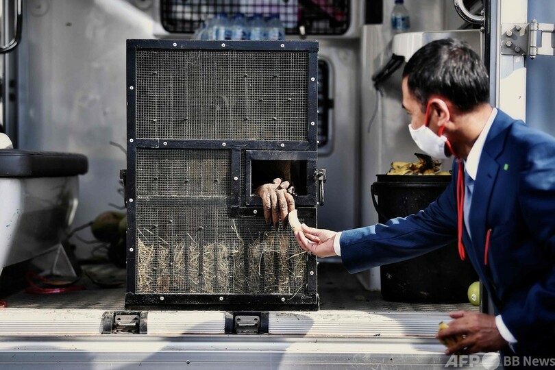 【12月18日 AFP】タイ首都バンコクの空港から17日、密輸されたスマトラオランウータン2頭が故郷のインドネシアに向けて出発した。