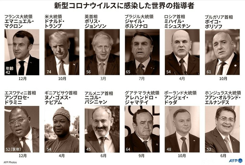 ニュース 政治・経済 図解 特集:新型コロナウイルス感染症「COVID-19」 【図解】新型コロナウイルスに感染した世界の指導者 2020年12月19日 8:00 発信地:その他 このニュースをシェア ‹ › ❮ 1/13 ❯ 新型コロナウイルスに感染した世界の指導者をまとめた図解。(c)AFP 画像作成中 ! 【12月19日 AFP】新型コロナウイルスに感染した世界の指導者をまとめた。(c)AFP 特集:新型コロナウイルス感染症「COVID-19」 世界各地で猛威を振るう新型コロナウイルス。 政治・経済 一覧へ> メディア・報道関係・法人の方向け 写真・動画 購入のお問合せ>