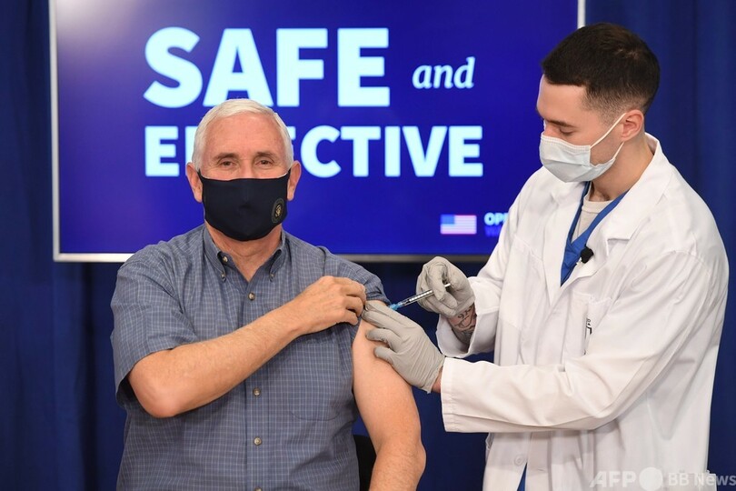 首都ワシントンのホワイトハウス(White House)で、妻と共にワクチン接種に臨んだペンス氏は「同ワクチンへの信頼を築く、けさはそのために来た」と話し、注射直後には「何にも感じなかった」と笑顔で語った。