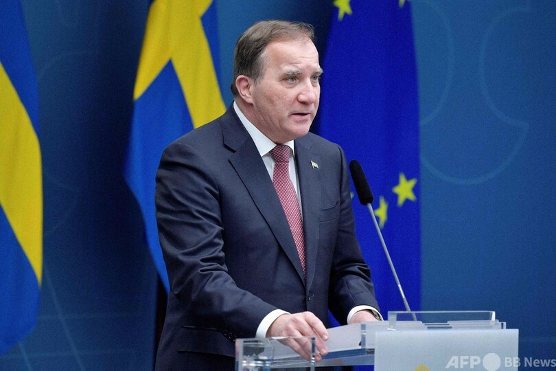 ロベーン首相は首都ストックホルムで開いた記者会見で、新たなコロナ対策を発表。その中で、公衆衛生局は今後マスクを推奨していくと明かし、「公共交通機関では一定の時間帯にマスク着用を求める」と述べた。(c)AFP