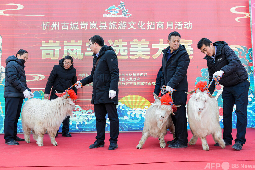 【12月26日 CNS】中国・山西省(Shanxi)忻州市(Xinzhou)で12日、「美ヤギ」コンテストが行われた。「三晋(山西省の別称)随一のヤギ県」といわれる岢嵐県(Kelan)の各農家が育てたカシミヤヤギがレッドカーペットの上に登場し、毛の色やカシミヤの量、角の形状などを審査。優勝から3位までに選ばれた「ミスヤギ」は忻州市の旧城下町を巡回し、住民や観光客の注目を集めた。