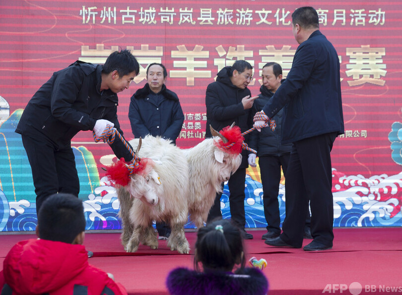山西省で「美ヤギ」コンテスト カシミヤの量や角の形状など競い合う