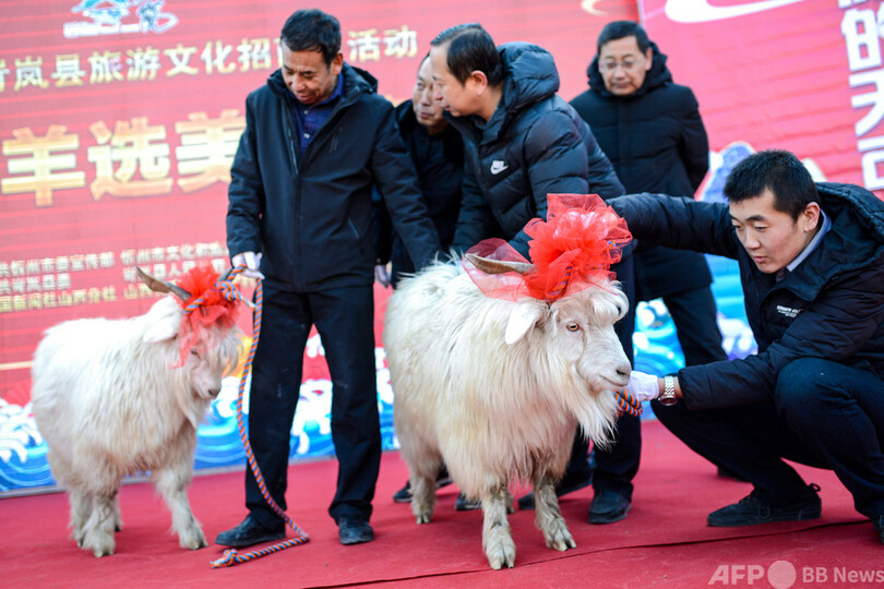【12月26日 CNS】中国・山西省(Shanxi)忻州市(Xinzhou)で12日、「美ヤギ」コンテストが行われた。「三晋(山西省の別称)随一のヤギ県」といわれる岢嵐県(Kelan)の各農家が育てたカシミヤヤギがレッドカーペットの上に登場し、毛の色やカシミヤの量、角の形状などを審査。優勝から3位までに選ばれた「ミスヤギ」は忻州市の旧城下町を巡回し、住民や観光客の注目を集めた。