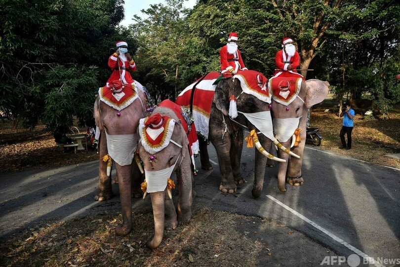 ニュース ライフ みんなでマスク着用! ゾウサンタからプレゼント タイ 2020年12月23日 14:46 発信地:アユタヤ/タイ [ タイ アジア・オセアニア ] このニュースをシェア ‹ › ❮ 14/15 ❯ タイ中部アユタヤで、サンタクロースに扮(ふん)しマスクをしたゾウ(2020年12月23日撮影)。(c)Lillian SUWANRUMPHA / AFP 画像作成中 ! 【12月23日 AFP】タイ中部アユタヤ(Ayutthaya)で23日、サンタクロースに扮(ふん)したゾウが学校を訪れ、子どもたちにマスクをプレゼントした。(c)AFP ライフ 一覧へ> メディア・報道関係・法人の方向け 写真・動画 購入のお問合せ>