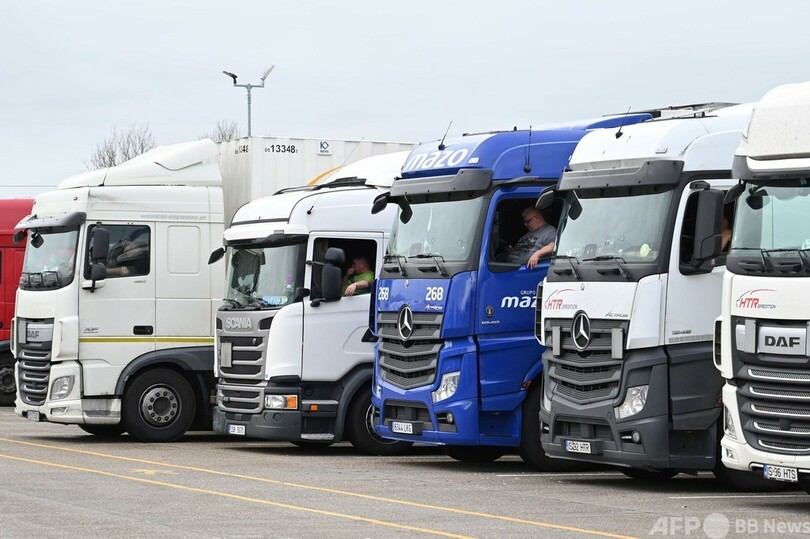 英国は先週、イングランド南部で変異種の感染が拡大していると発表。これを受け、フランスを含む50か国以上が英国との間の渡航を制限した。英国と欧州大陸間の貨物輸送が停止されたことから、主要通関地のドーバー(Dover)周辺は混乱。サプライチェーンがまひし、英国内の食品不足につながる懸念が出ている。(c)AFP