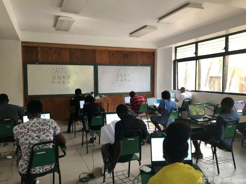 新型コロナウイルス感染症の予防・抑制の観点から、試行試験は、在宅オンライン形式を中心に、一部では集中オンライン形式で行われました。(c)CGTN Japanese/AFPBB News
