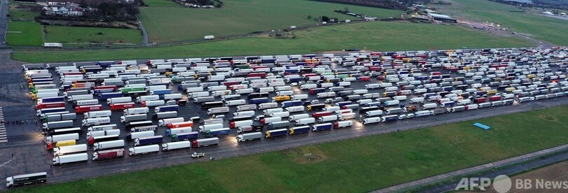 英国での新型コロナウイルス変異種の感染拡大を受け、フランスが英国からの入国を禁止したため、英南部のドーバー(Dover)港付近ではトラック数千台が何日間も立ち往生している。
