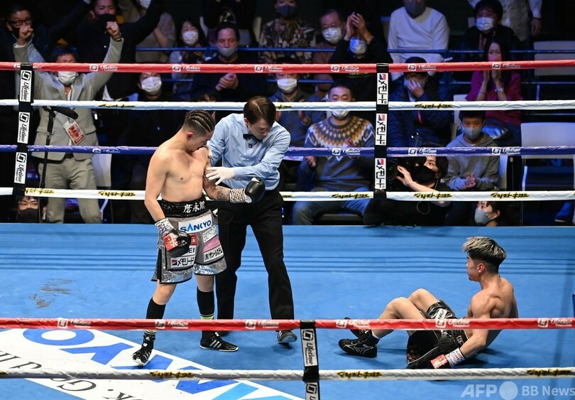 【1月1日 AFP】ボクシング、WBO世界スーパーフライ級タイトルマッチが31日、大田区総合体育館で行われ、王者の井岡一翔(Kazuto Ioka)が田中恒成(Kosei Tanaka)に8回TKO勝ちし、防衛を果たした。(c)AFP