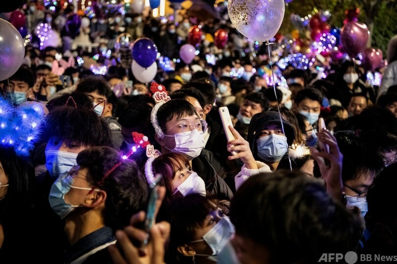 コロナ初確認の武漢の年越し、大群衆が歓声 中国