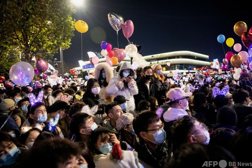 コロナ初確認の武漢の年越し、大群衆が歓声 中国