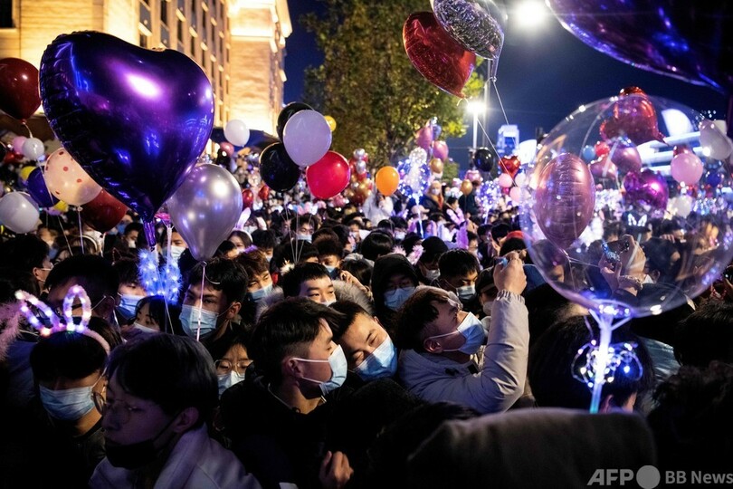 コロナ初確認の武漢の年越し、大群衆が歓声 中国
