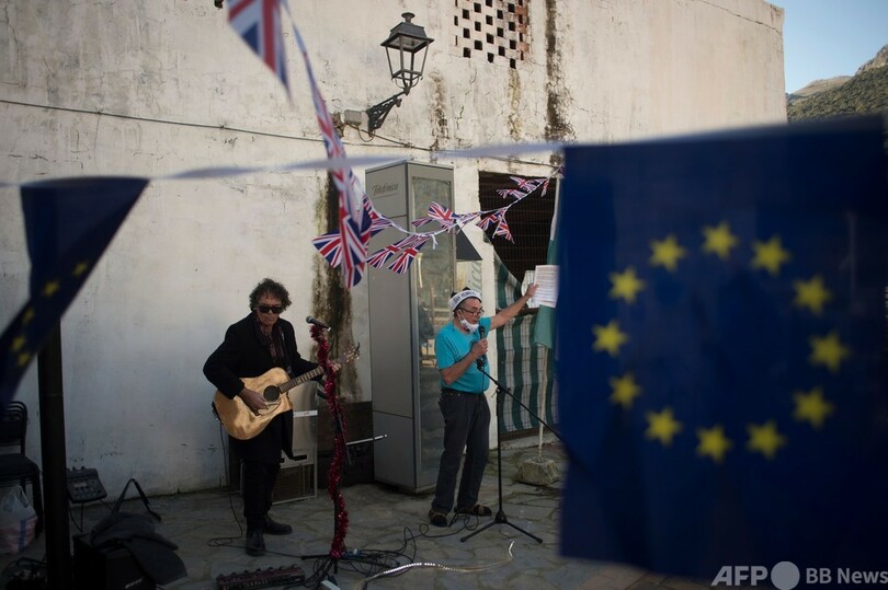 英国のEU離脱に不満を持つ人は多く、居住や行政手続きなどの問題に直面する人もいる。しかし、スペイン南部の村ヒメラデリバル(Jimera de Libar)にあるバーでは、この不運を最大限に利用することにした英国人らがパーティーに集まった。