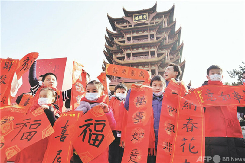 責任者によりますと、1日から来月7日まで、黄鶴楼で書道家が毎日のように観光客のため迎春用の「春聯」を書いて贈呈するということです。(c)CGTN Japanese/AFPBB News