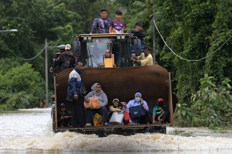 【1月6日 AFP】マレーシアで洪水が発生し、これまでに少なくとも4人が死亡、2万8000人以上が避難を余儀なくされている。6日には掘削機を用いて避難する住民や、氾濫した水の中を泳いで移動する人の姿も見られた。